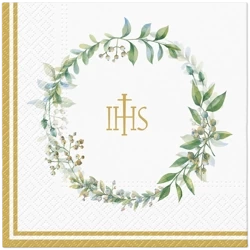 Communion 3-layer napkins, white and gold, 1/4, 33 x 33 cm 20 pcs.