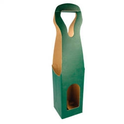 Biodegradowalny kartonik na wino o minimalistycznym design, który posiada poręczny uchwyt oraz okienko, przez które widać zawartość. Ta opcja dostępna jest w kolorze kraft oraz zielonym.