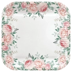 Talerz papierowy kwadratowy "Roses", 23 x 23 cm, 8 szt.