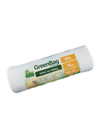 Biocompostable garbage bags with a capacity of 60 L and dimensions of 75 cm x 31 cm. They are made of potato starch-based material.