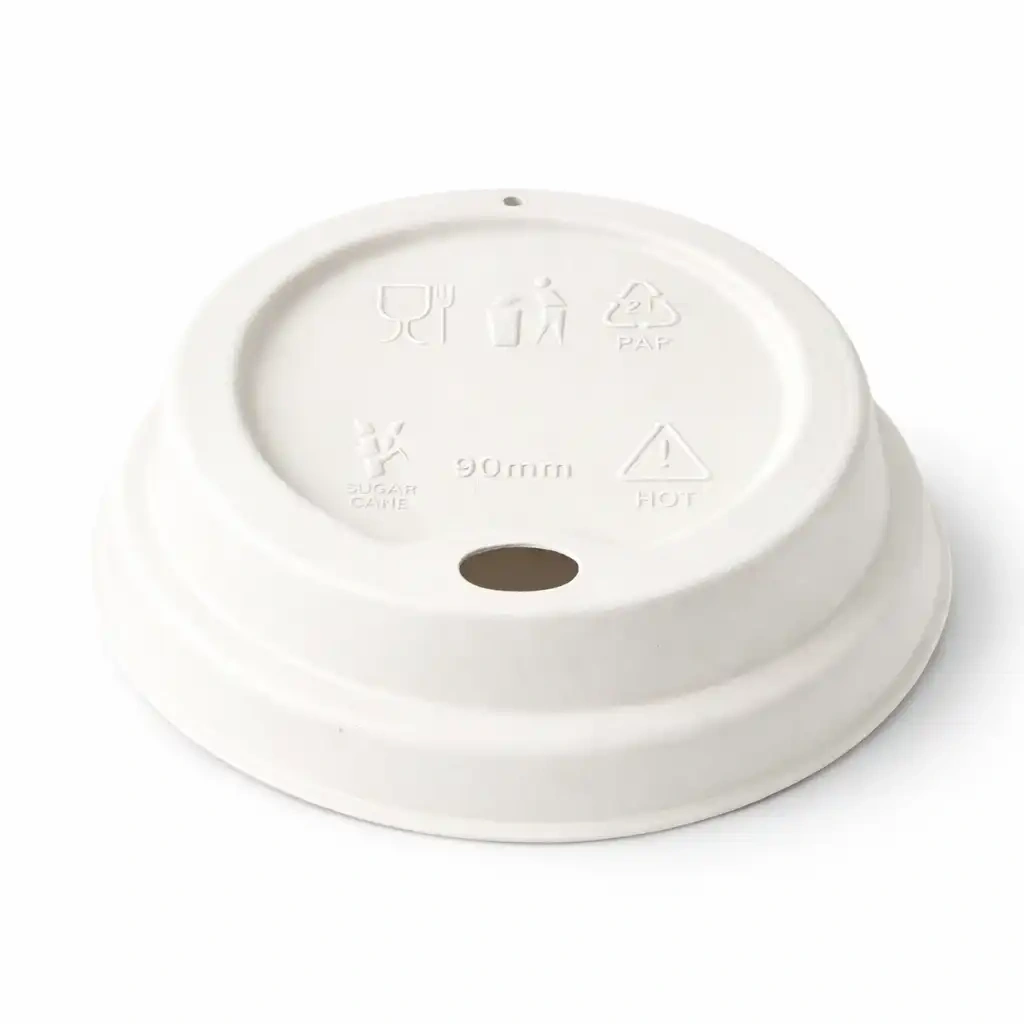 Flat lids in natural beige color for cups with a diameter of 90 mm, made of 100% sugar cane.