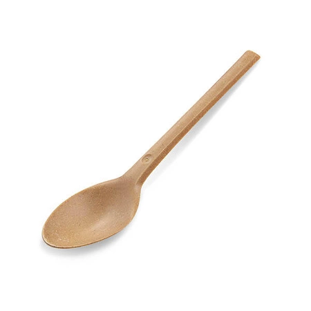 Eco-friendly brown spoons 17 cm long, made from a combination of biodegradable polymer and wood chips. Resistant to high temperatures - up to 95°C.