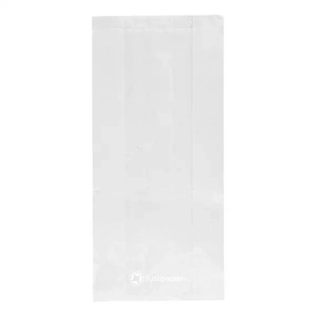 Semi-transparent paper gusset bags with dimensions 12+6 cm x 26 cm.