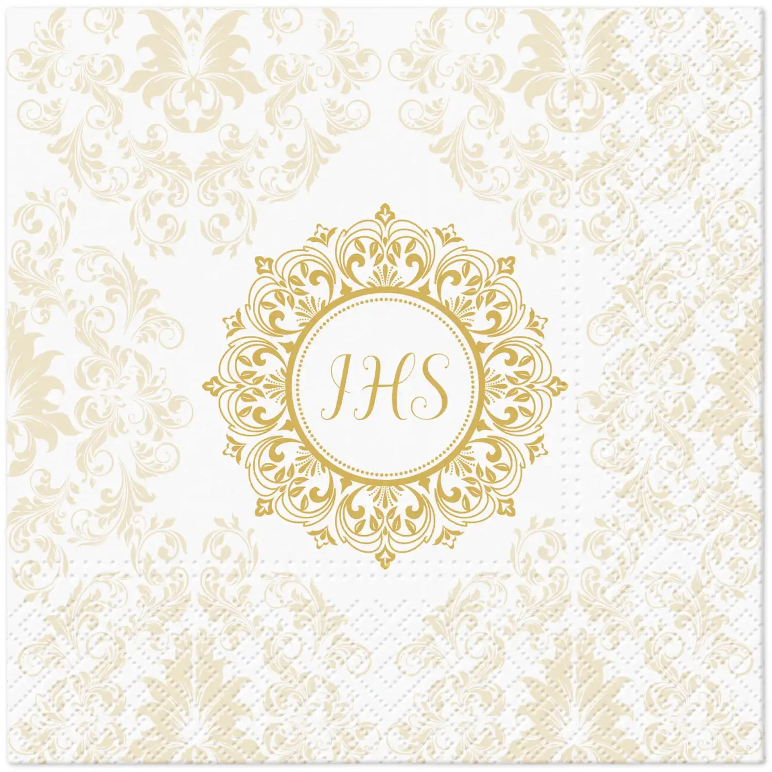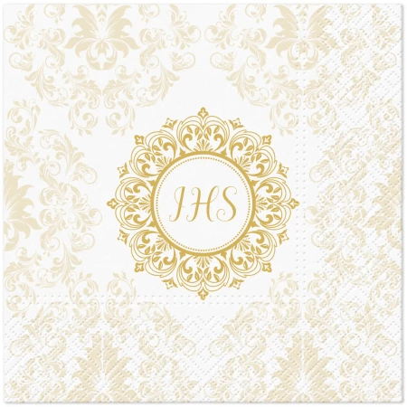 Communion 3-layer napkins, white and gold, 1/4, 33 x 33 cm 20 pcs.