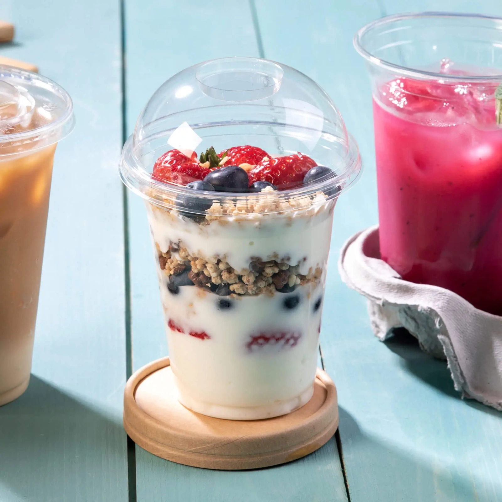 Convex lids with a diameter of 95 mm without a hole. They are made of 100% PLA.