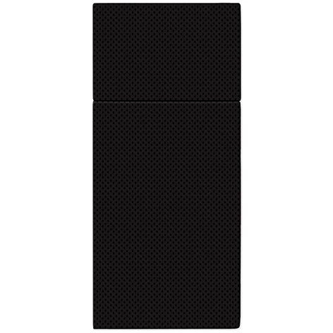 Black, embossed* napkin pockets for cutlery measuring 38 cm x 32 cm, folded in 1/8, from the Softpoint series. Made from 100% cellulose.