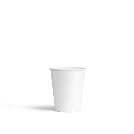 White, plain (without manufacturer's prints), single-ply paper cups with capacity of 100 ml and diameter of 62 mm.