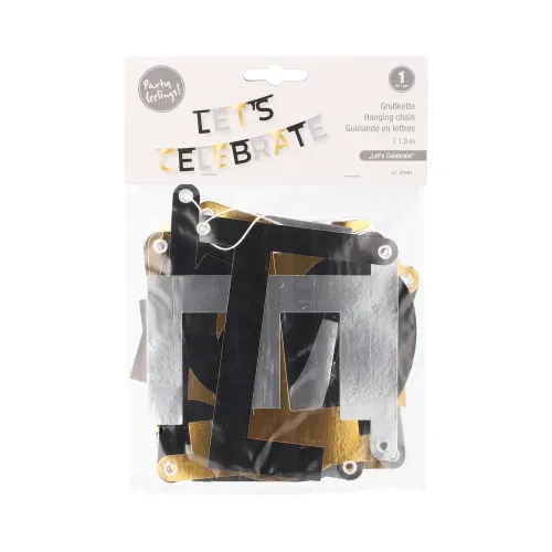 Welcome your guests to the party with the “Let's Celebrate” garland! Made of durable cardboard and decorated with black, gold, and silver letters, it adds a joyful touch to any celebration. Easy to hang, it is a striking decoration for both children’s and adults’ parties.