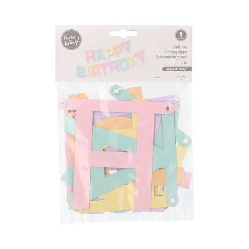 Celebrate your birthday in style with our "Happy Birthday" garland! Made of paper and decorated with different colored letters, it will add a cheerful touch to any party. Easy to hang, it will work as an eye-catching decoration for children's and adult parties.