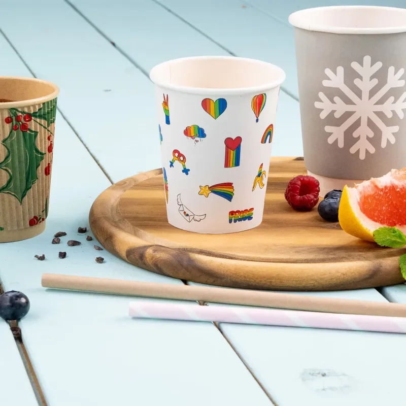 Single-layer ecological mugs with color printing with capacity of 250 ml and diameter of 80 mm. They are made 100% paper with dispersion coating (water and resin) - is a barrier that keeps the cups airtight.