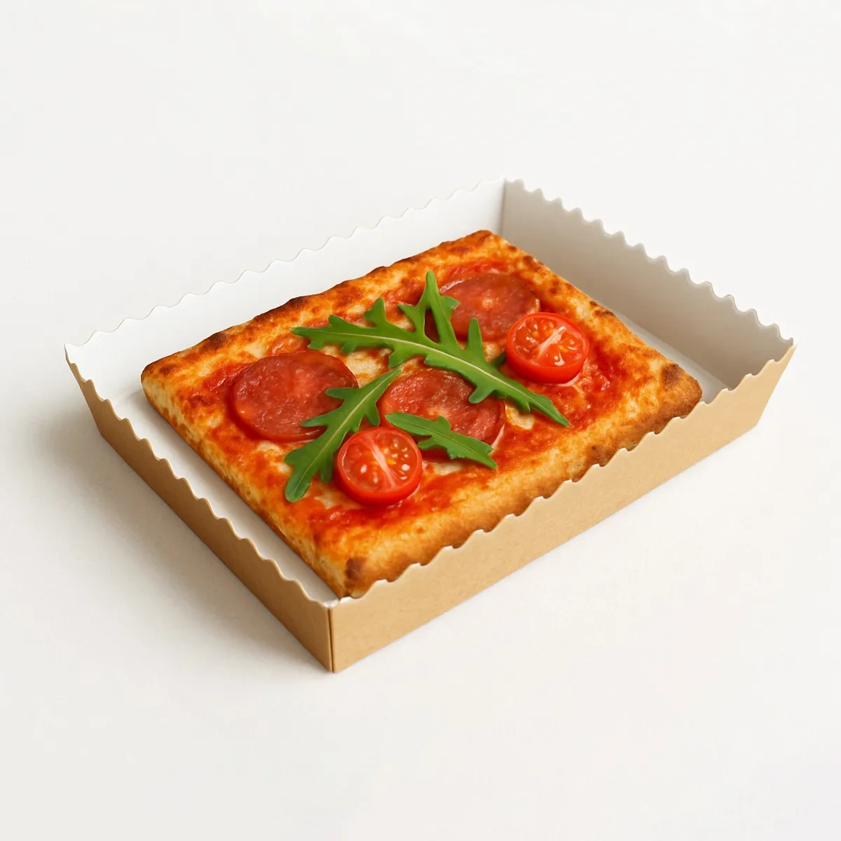 This product is a practical solution for serving fast food meals. Perfect for a burger + fries set, a slice of pizza, or other street food snacks. Thanks to its optimal depth and sturdy construction, it comfortably holds food without deforming during use. Excellent for restaurants, outdoor events, food trucks, or festivals. A truly versatile packaging that combines functionality with aesthetic food presentation.