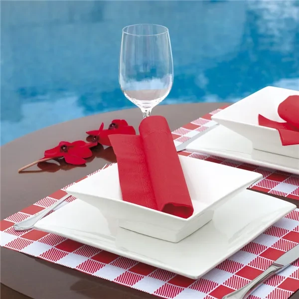 Paper placemats in a red and white checkered pattern. They measure 31 cm x 43 cm.