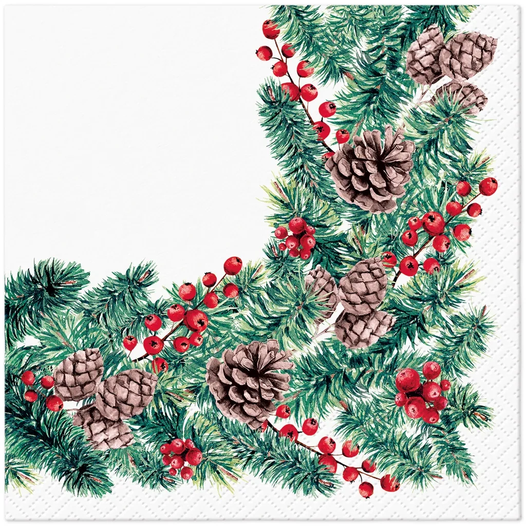 Elegant 3-ply tissue napkins with a Christmas print are a perfect way to add a festive atmosphere to any table. Made from soft yet durable material, they are ideal for both family dinners and corporate parties. The carefully crafted holiday design adds decorative charm and enhances the special mood of the season. A practical and stylish addition to your Christmas table setting.