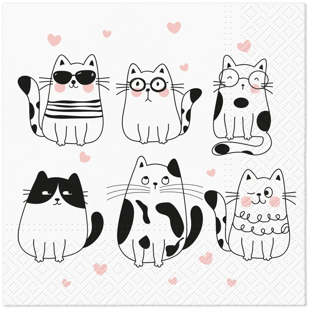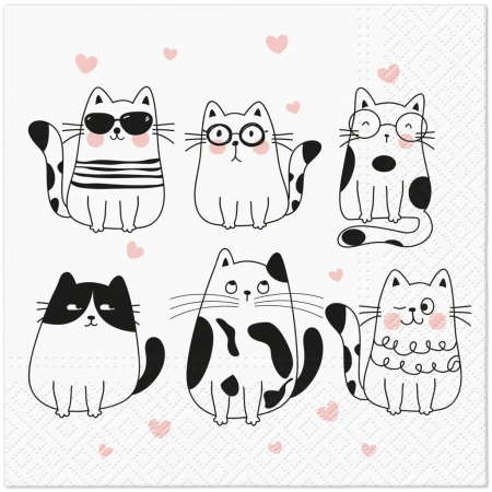 3-ply napkins "Meow Hearts", 1/4, 33 x 33 cm 20 pcs
