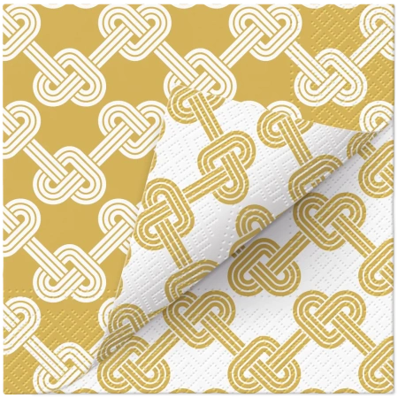 3-ply napkins measuring 33 cm x 33 cm (folded – 16.5 cm x 16.5 cm) with double-sided print (the outer and inner sides of the napkin feature different designs – visible in the photo)! Made from 100% paper tissue.