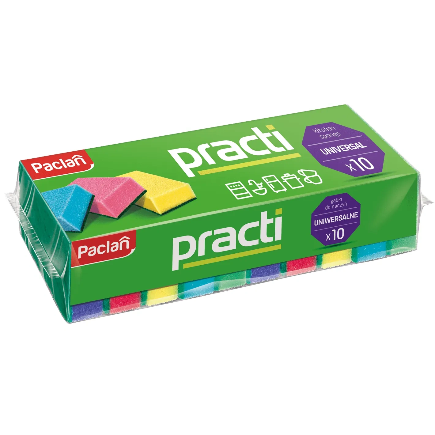 Dishwashing sponges by Paclan from the Practi series - colorful, universal. Packed in sets of 10 pieces.
