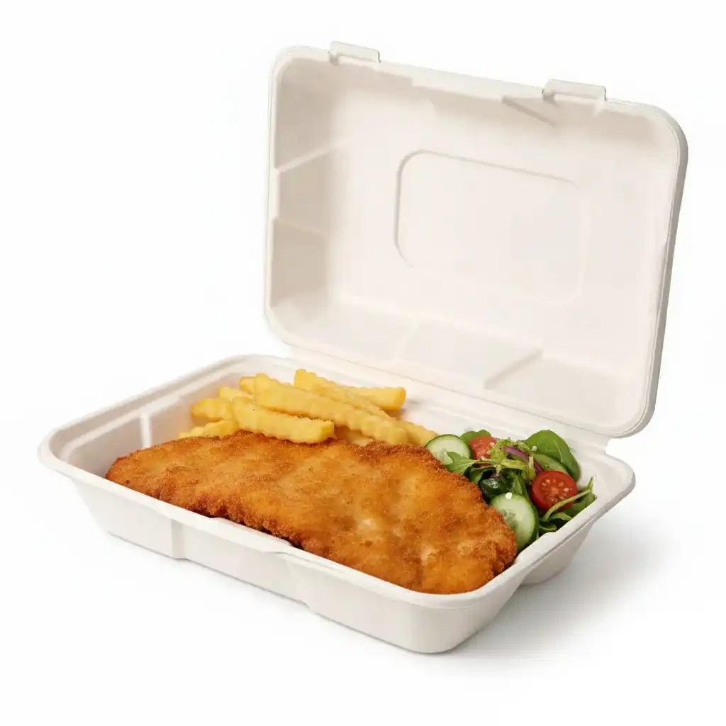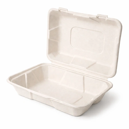 Sealable, unlined boxes with a capacity of 1000 ml and dimensions of 23 cm x 15.5 cm x 8 cm, entirely made of sugar cane. This material of natural origin does a great job of storing or carrying food in it - thanks to its very good thermal properties, food stays hot and crispy for a long time.