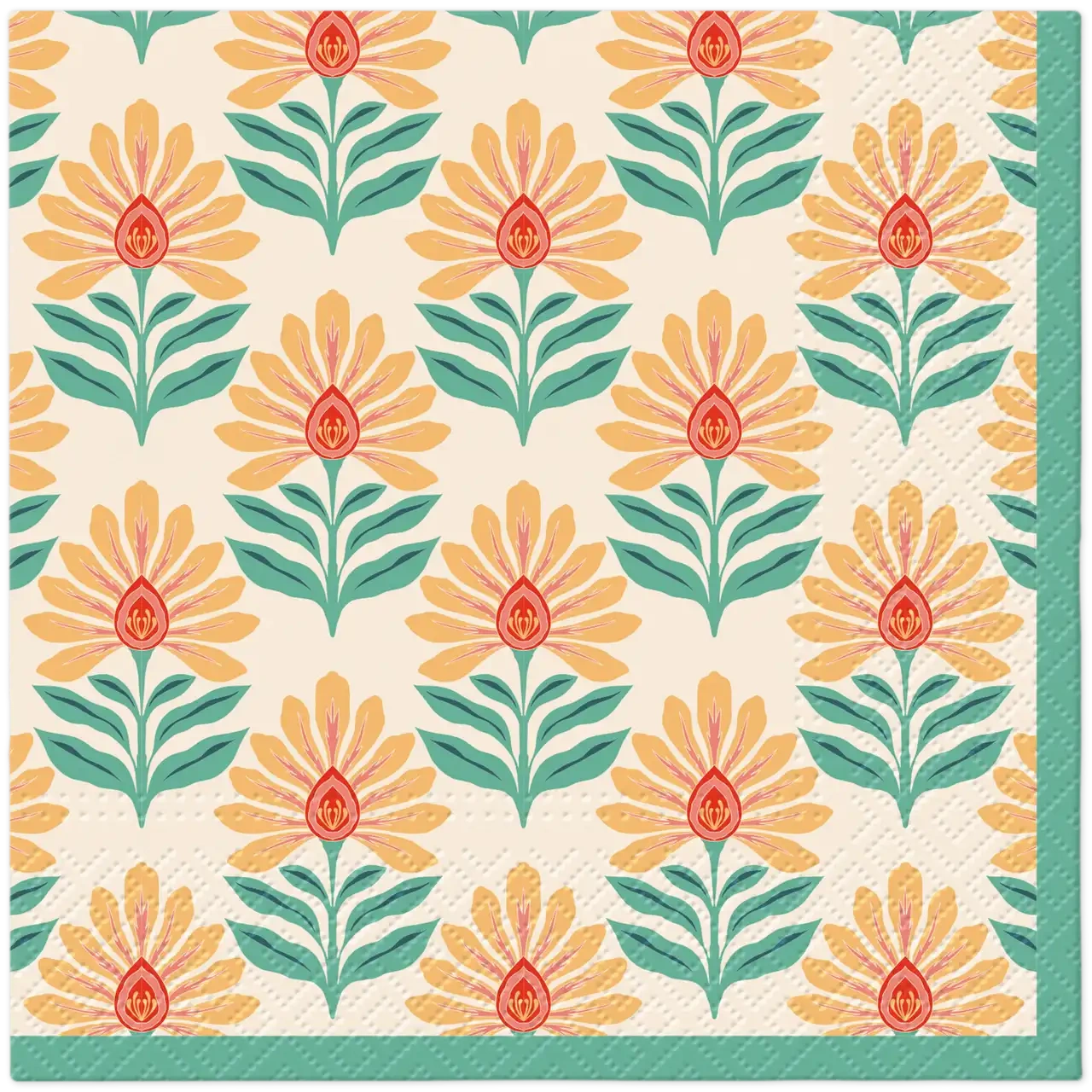 Decorative 3-ply napkins measuring 33 cm x 33 cm, folded into quarters. Made from 100% paper tissue.