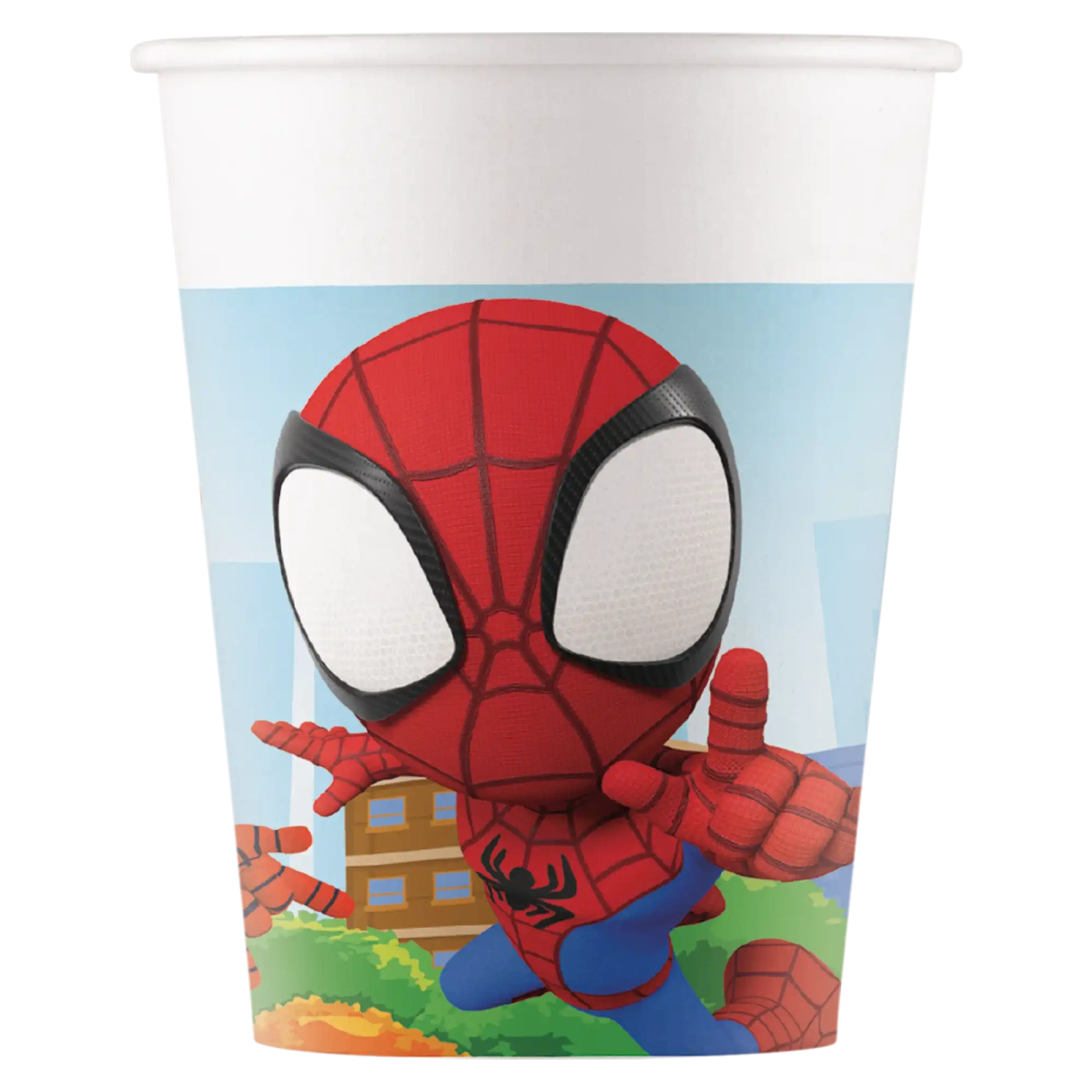 Eco-friendly paper cups with a colorful Spidey-themed print, capacity 200 ml. Perfect for children’s birthday parties and events attended by the youngest guests.