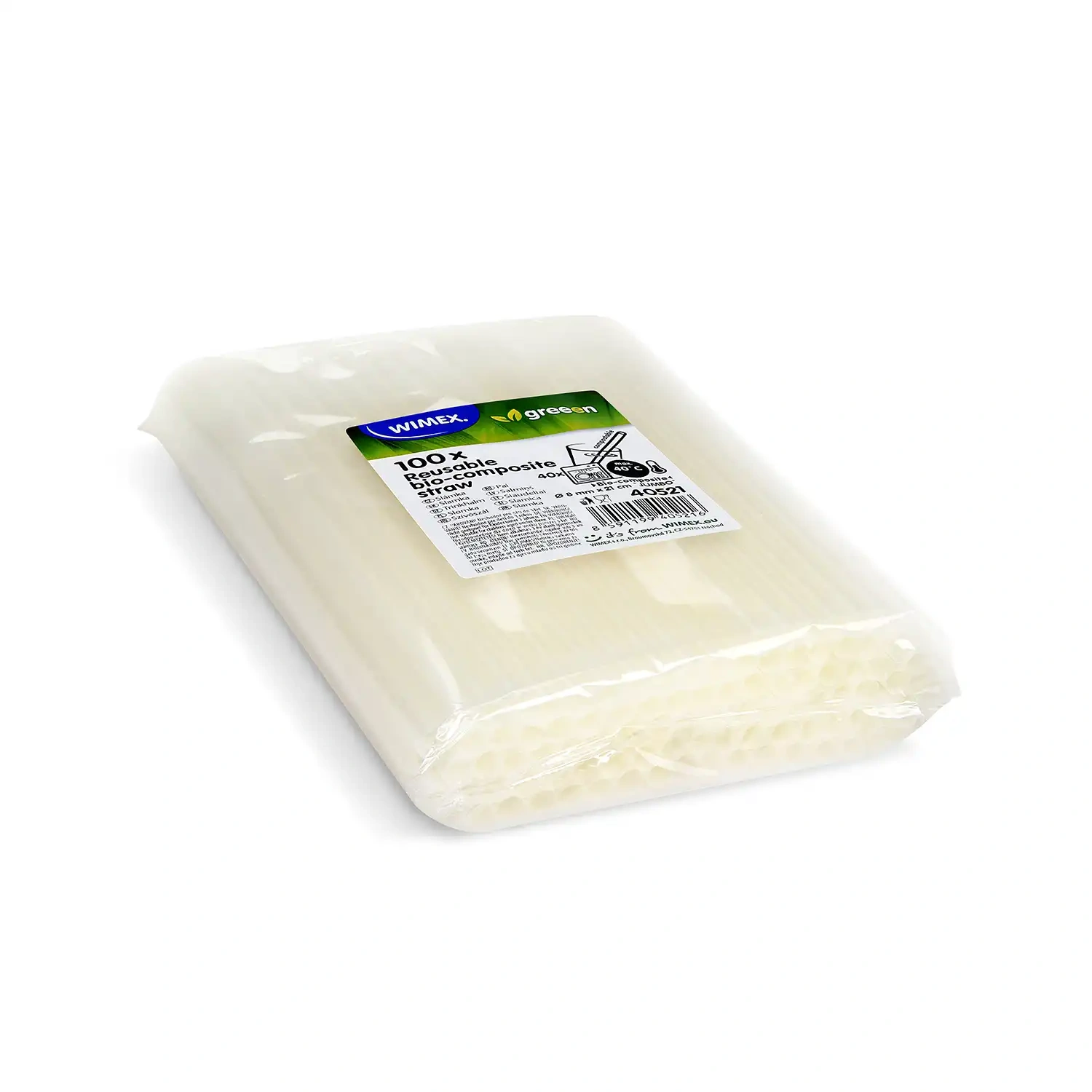 Reusable biocomposite straws white 8/210 mm 100 pcs