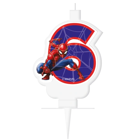 Birthday candle with Spiderman Marvel theme, showing the number 6. The package contains 1 piece of candle with a height of approx. 10 cm.