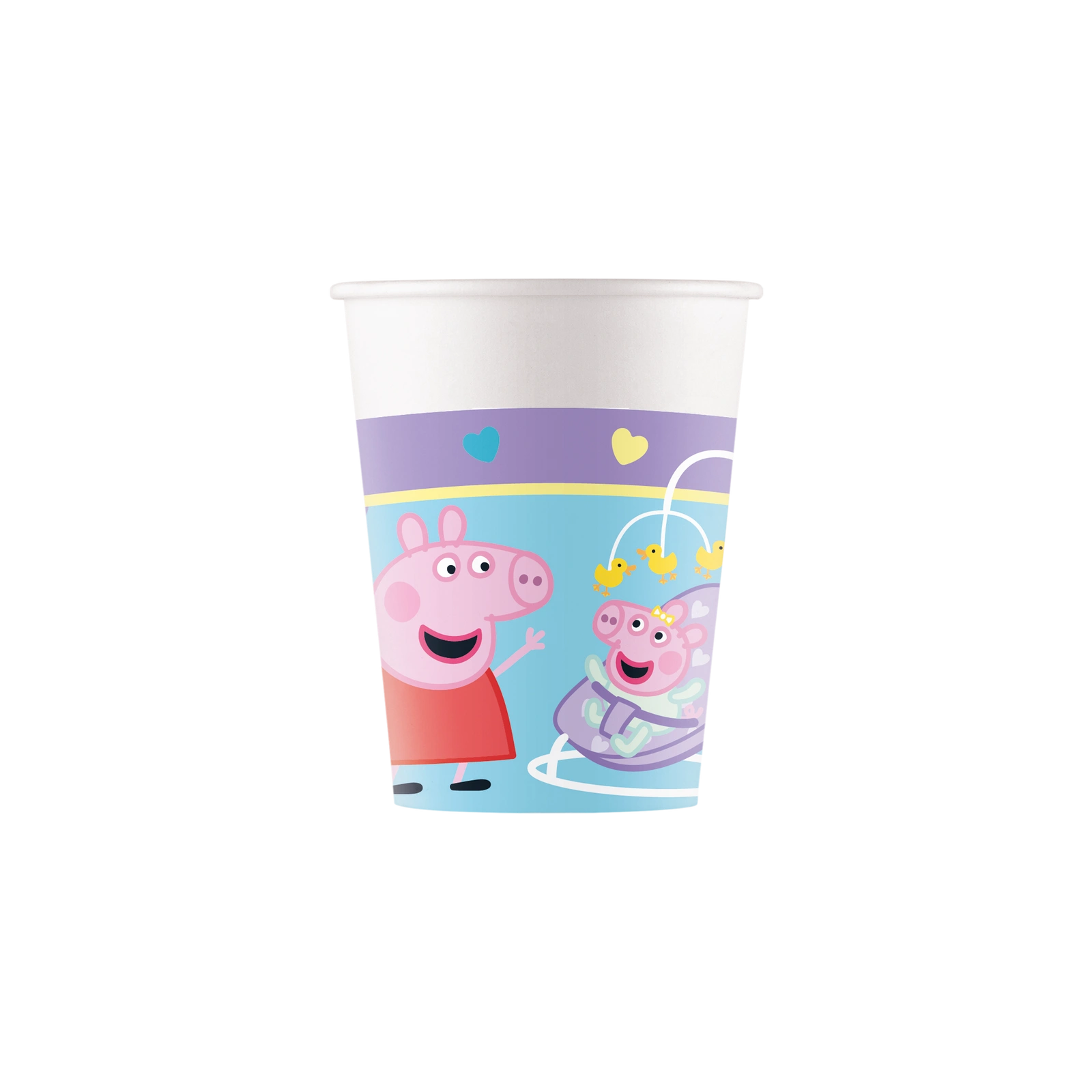 Eco-friendly paper cups with a colorful Peppa Pig-themed print, capacity 200 ml. Perfect for children’s birthday parties and events attended by the youngest guests.