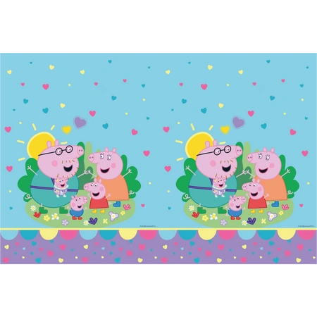 Tablecloth measuring 120 cm x 180 cm with a Peppa Pig motif is made of plastic, making it a reusable alternative to paper tablecloths. It is perfect for children’s birthday parties or themed events attended by the youngest guests.