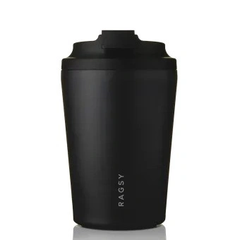 Thermal mug RAGS'y Simply Cup in Black color, designed for storing hot and cold beverages. The 340 ml capacity makes it perfect for coffee or tea at home, work, or on the go.