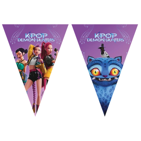 Paper garland with the K-POP motif. It has a length of 230 cm, and each flag has a height of 25 cm.