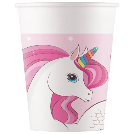 Eco-friendly paper cups with a colorful Unicorn-themed print, capacity 200 ml. Perfect for children’s birthday parties and events attended by the youngest guests.