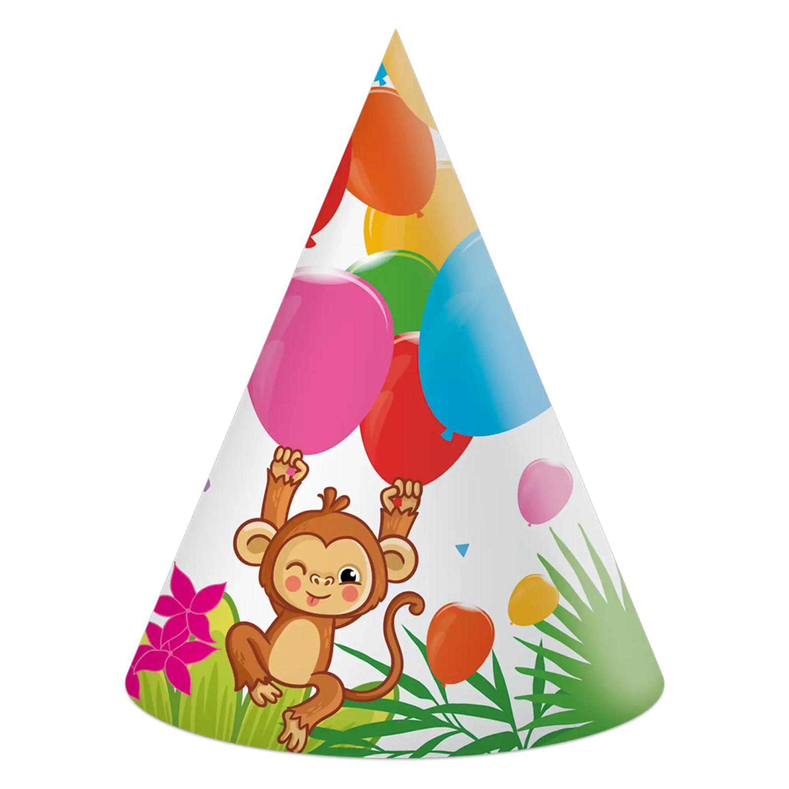Set of 6 paper birthday hats with the “Jungle ” motif is a perfect addition to a themed children’s party. Colorful graphics featuring favorite cartoon heroines will make little guests feel the true party atmosphere, while the overall decoration gains a cohesive, fairy-tale character.