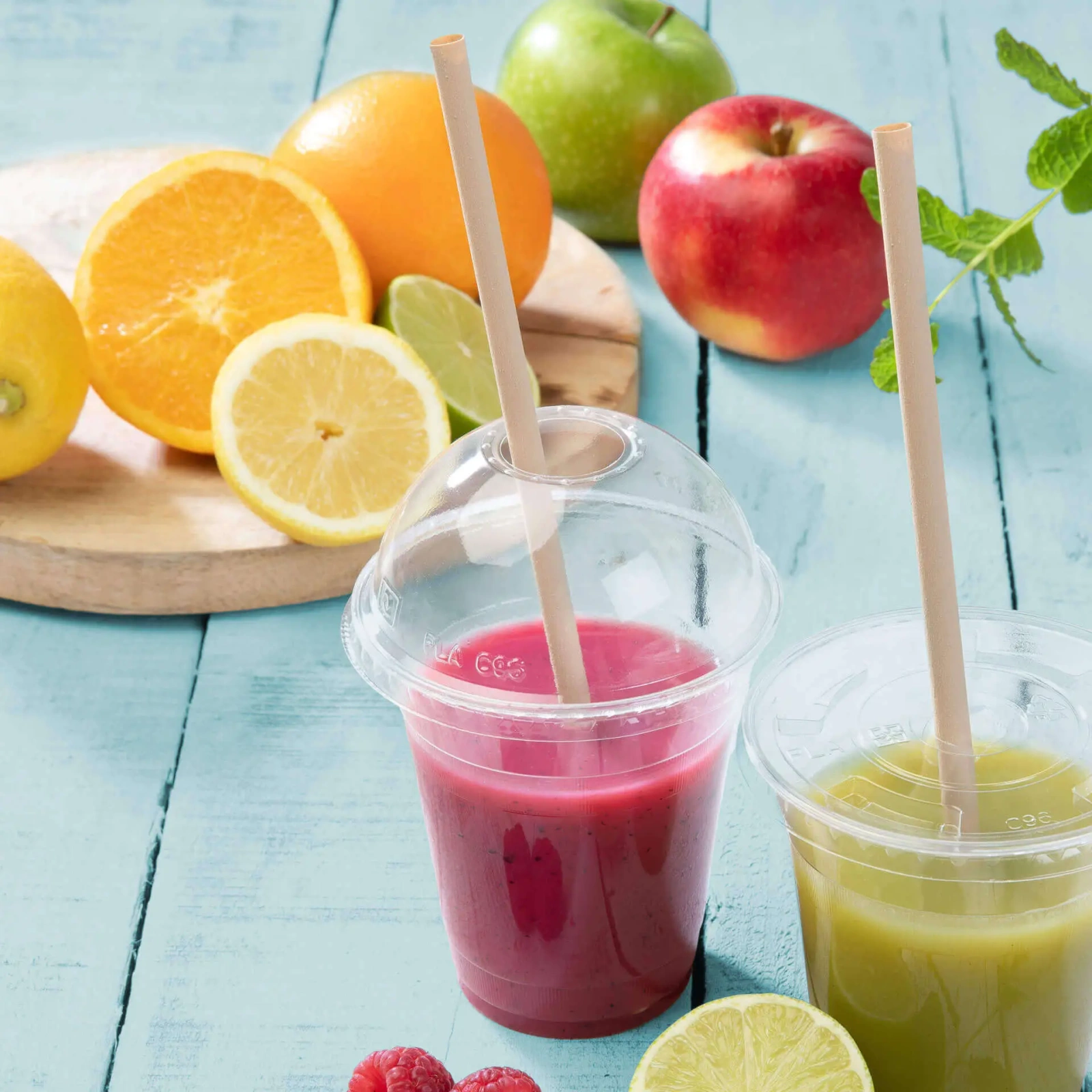 Convex lids with a hole made of cornmeal. Fits cups with capacities from 300 to 600 ml.