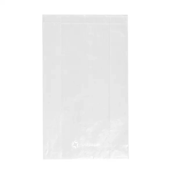 Półprzezroczyste, papierowe torebki fałdowe o wymiarach 14+6 cm x 23 cm.