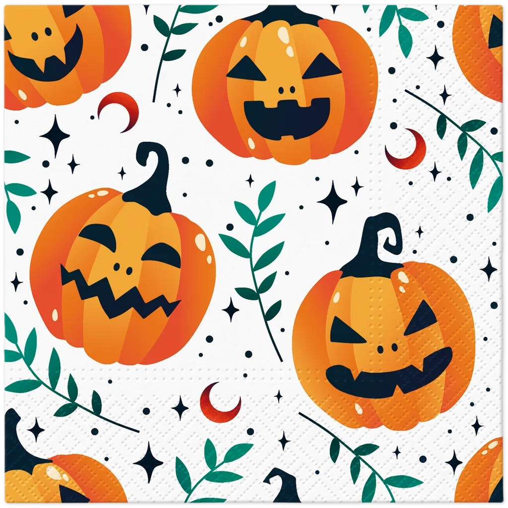 Serwetki 3-warstwowe z motywem Halloween, o wymiarach 33 cm x 33 cm (złożone - 16,5 cm x 16,5 cm).