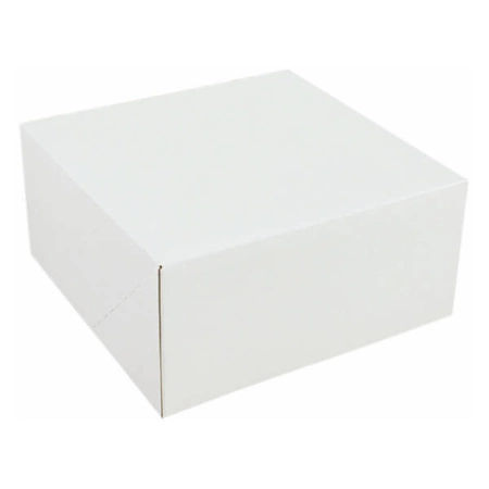 Papierowe pudełka na wyroby cukiernicze. Mają wymiary 18 cm x 18 cm x 9 cm. Zostały w 100% wykonane z papieru.