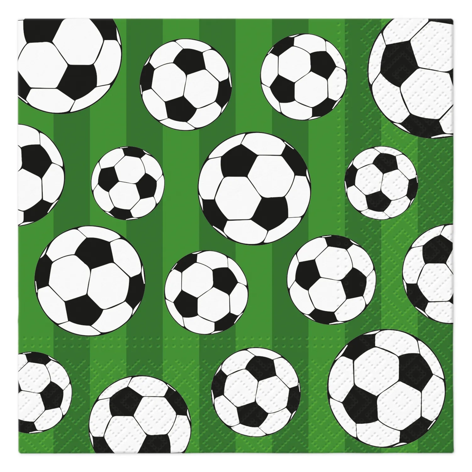 Serwetki trójwarstwowe "Soccer Ball" o wymiarach 33 cm x 33 cm (złożone - 16,5 cm x 16,5 cm). Zostały w 100% wykonane z bibuły.