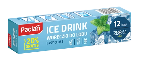 Woreczki do lodu marki Paclan – opakowanie zawiera 288 sztuk kostek lodu w wygodnych woreczkach.