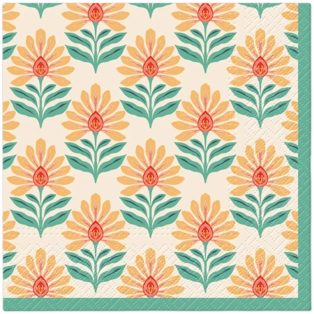 Ozdobne serwetki 3-warstwowe o wymiarach 33 cm x 33 cm, składane w 1/4. Wykonane zostały w 100% z bibuły.