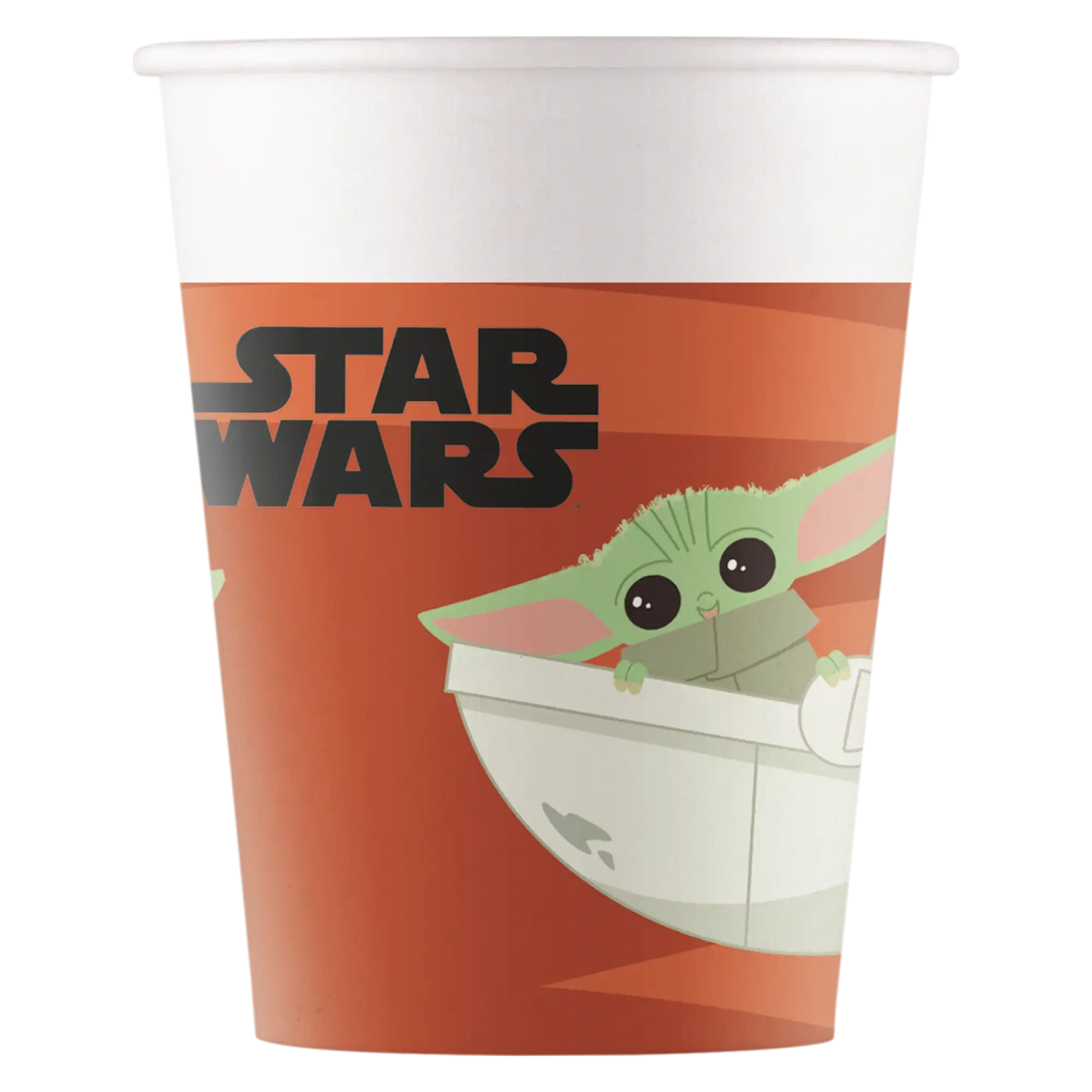 Ekologiczne kubki papierowe, z kolorowym nadrukiem z motywem STAR WARS Mandalorian, o pojemności 200 ml. Świetnie sprawdzą się na imprezach urodzinowych dziecka czy na przyjęciach, w których uczestniczą najmłodsi.
