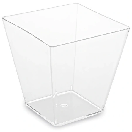 Nowoczesne pojemniki typu piramida, przeznaczone do serwowania deserów, przekąsek oraz finger food. Opakowanie zawiera 20 sztuk pojemników o pojemności 230 ml.