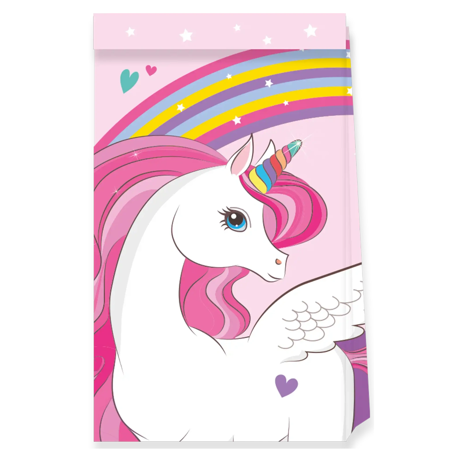 Zestaw 4 sztuk papierowych torebek prezentowych z motywem Unicorn o wymiarach 16 × 22 cm to praktyczny i efektowny sposób na pakowanie słodyczy czy drobnych upominków. Torebki świetnie sprawdzą się na urodzinach i innych dziecięcych imprezach, dodając prezentom kolorowego, tematycznego charakteru i podkreślając radosną atmosferę przyjęcia.